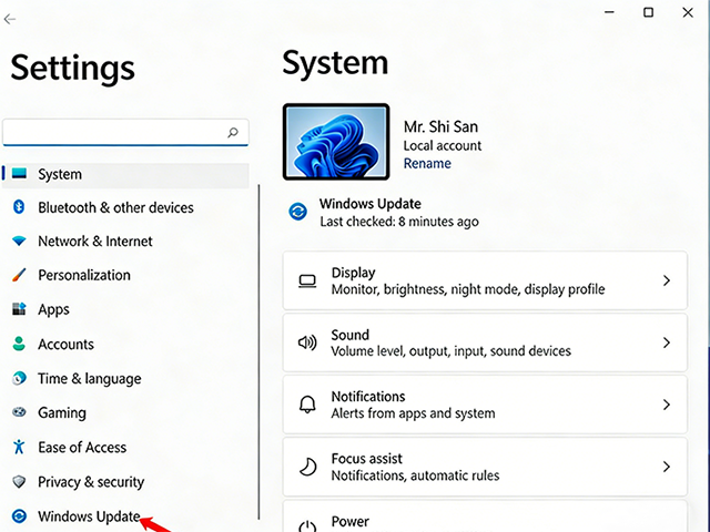 - In the Settings window (press Win + I), click Windows Update on the left sidebar.