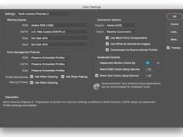 How to setup color preference in Adobe Photoshop color settings ...